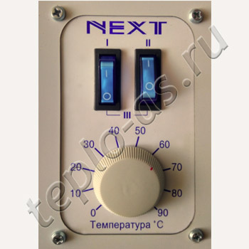 - панели управления (14), с расположенными на ней выключателями ступеней мощности (15) и терморегулятором (16), служащим для установки температуры нагрева теплоносителя.